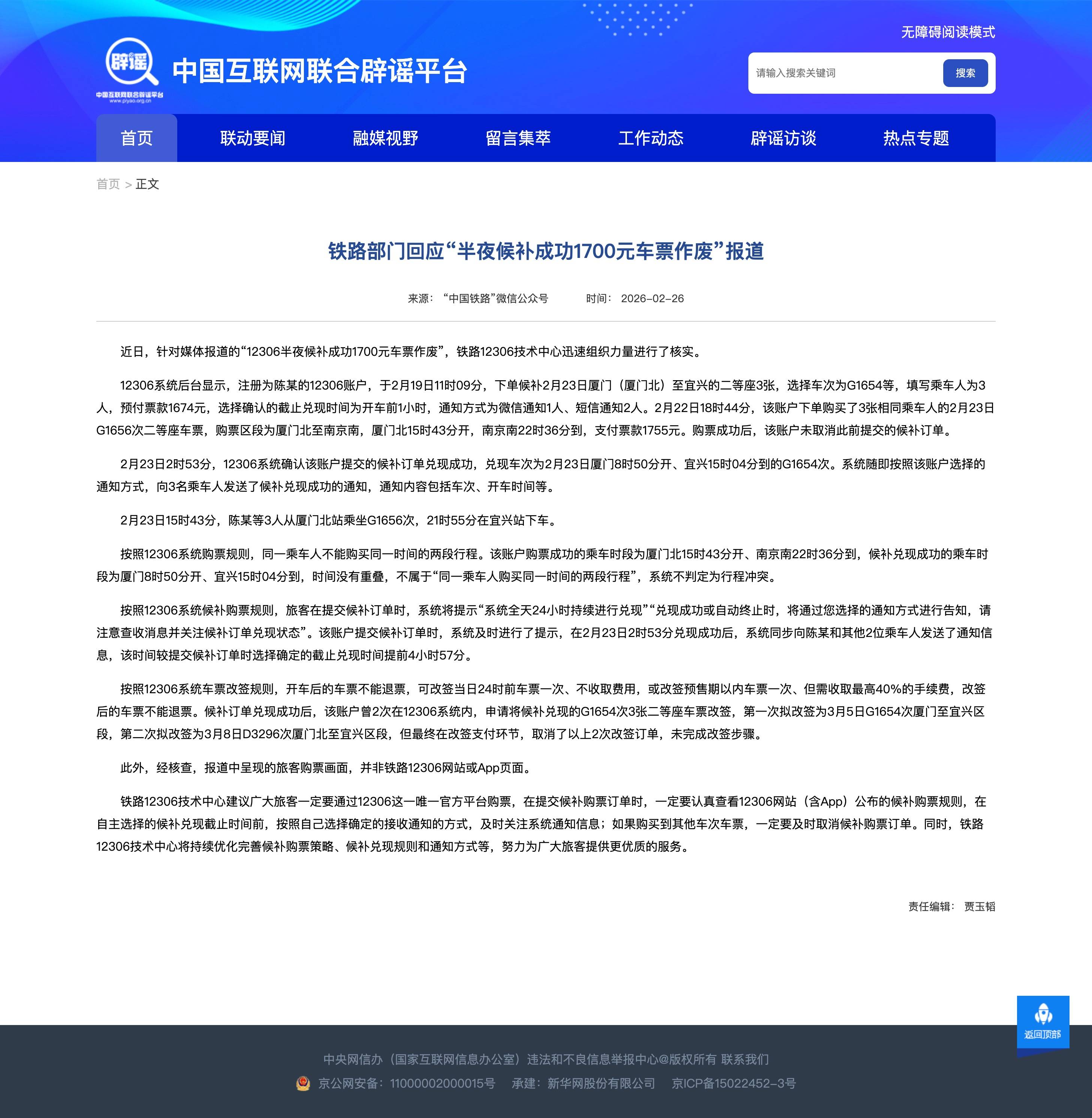 今天,铁部分对网传「三更候补成功 1700 元车票做废」传说风闻进行了回应,称相关报道并不失实。「中国铁」号发布的文章显示,铁 12306 手艺核心对相关订单进行了核查,确认候补流程一般、通知及时,所谓「做废」系误读。铁部分暗示,陈某于 2 月 19 日提交厦门(厦门北)至宜兴的候补订单,并正在 2 月 22 日自行采办了另一趟 G1656 次车票,但未打消候补。系统正在 2 月 23 日凌晨兑现候补订单后,按其选择的体例向 3 名搭车人发送了通知。因为候补车次(G1654)取已购车次(G1656)搭车时段并不堆叠,系统不会鉴定为行程冲突,因而不存正在「从动做废」。铁部分还指出,部门展现的购票界面并非 12306 页面,并提示搭客务必通过渠道购票,若已采办其他车票需及时打消候补订单,免得形成。据磅礴旧事和新京报报道,携程集团今天发布了 2025 年第四时度及全年未经审计财报,并披露董事会取办理层严沉人事情动,两位结合创始人范敏、季琦别离辞任公司董事兼总裁、公司董事职务。2025 年第四时度携程录得其他收入 20。38 亿元,而客岁同期为收入 1。37 亿元;全年其他收入达 213。21 亿元,同比翻近 10 倍,次要源于出售印度正在线旅逛平台「MakeMyTrip」股份所得。若剔除该项影响,携程 2025 年全年停业利润同比增加约 11%。携程 CEO 孙洁正在电线 年焦点 OTA 营业成交额约 1。1 万亿元,此中住宿取机票营业别离贡献约 2800 亿元取 5500 亿元。值得关心的是,携程正在财报中提及,本年 1 月收到国度市场监管总局查询拜访通知,目前查询拜访仍正在进行,公司正全力共同监管部分。